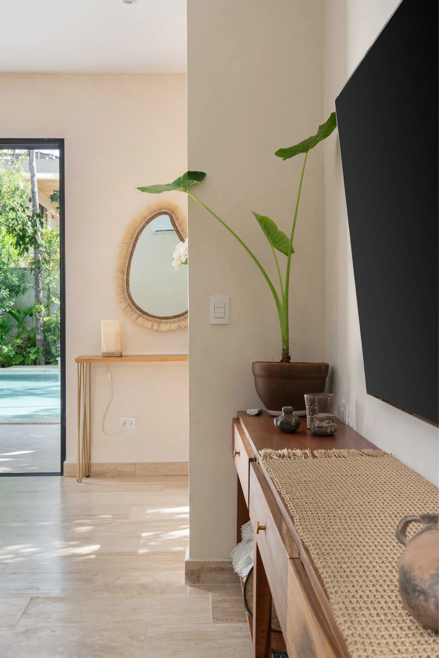 High ceilings and glass skylights enhance the magnificent and luxurious feeling of space, with natural elements and textiles perfectly combined to create one of the most beautiful properties in the Region. Enriched with abundant natural light, creamy colors seamlessly blend outdoor and indoor spaces. Experience the epitome of luxury villas in Tulum, where every detail is designed to exceed your expectations. Located in the heart of the Riviera Maya, our private villa offer an unparalleled escape.